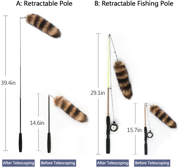 【Telescopic Rod Design 】The cat wand is retractable, and different rod length helps your cats to flip, jump, pounce, chase and prowl this cat teaser wand toy.