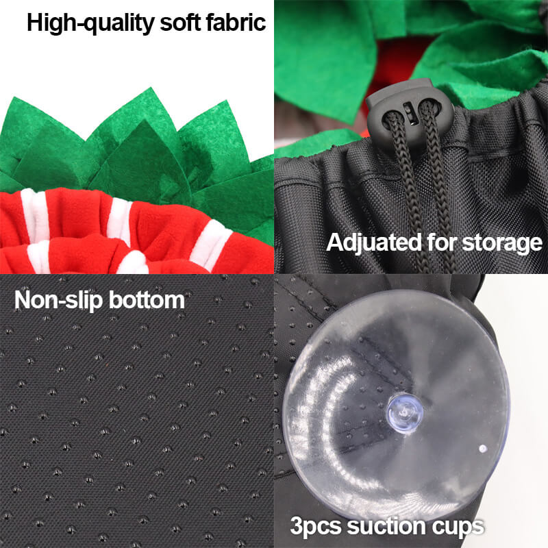 【Anti-slip】The bottom of the snuffle mat is a non-slip fabric with silica gel dots. There are 3 powerful suction cups that ensure a stable grip on the smooth surface and prevent the dog from slightly moving the pad during sniff training.