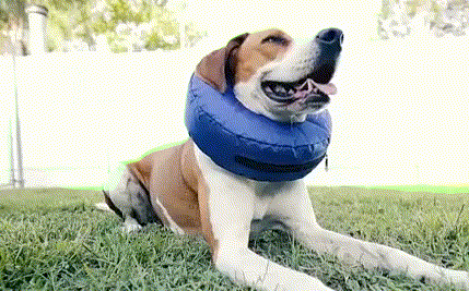 - Some dogs may feel uncomfortable if it's the first time to use the inflatable collar, they may try to kick it off with their hind legs.