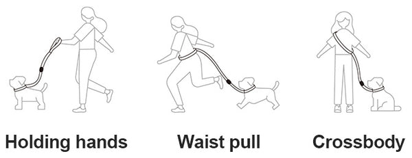 【3-in-1 Design Dog Leash】The dog hands-free leash is an extremely versatile dog leash with a 3-in-1 design. It can be adjusted through the POM buckle to wear it across your chest, wear it around your waist or use it as a regular leash.