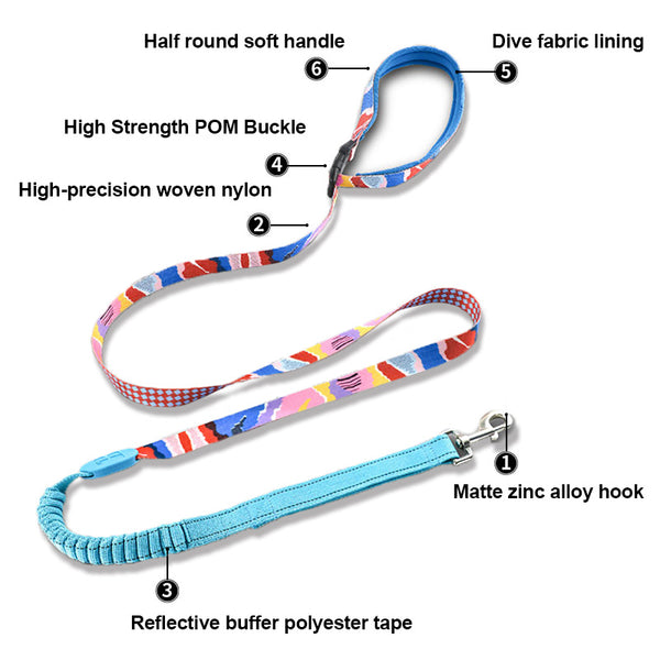 【Anti-tear Wavelength Bungee】Made of anti-tear wavelength bungee, this shock-absorbing hands-free dog leash is strong enough to absorb shocks, minimize strain and injury risk for you, and your dog.