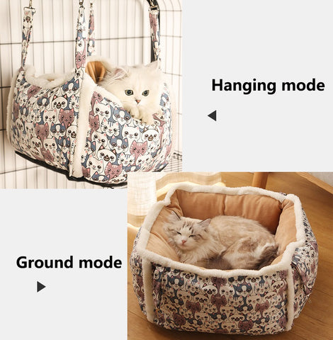 Our dual-purpose cat hammock bed offers a convenient hanging design that can be attached to your cat’s crate or cage corners with metal hooks. It can also be placed directly on the ground as a nest for cats!