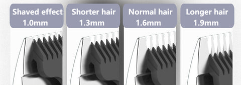 4 Adjustable Blade Range: With the micro-adjustment button on the side, the ceramic blade can be adjusted in 4 ranges(1.0mm - 1.9mm), as well as equipped with 4 guide combs(3mm/6mm/9mm/12mm) to keep your pets safe.