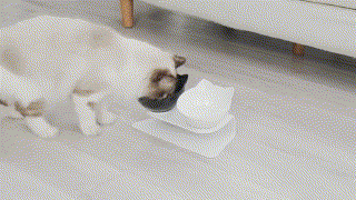 - The cat food bowl in a large oblique rim reduces cat food dropping and is suitable for flat-faced cats.